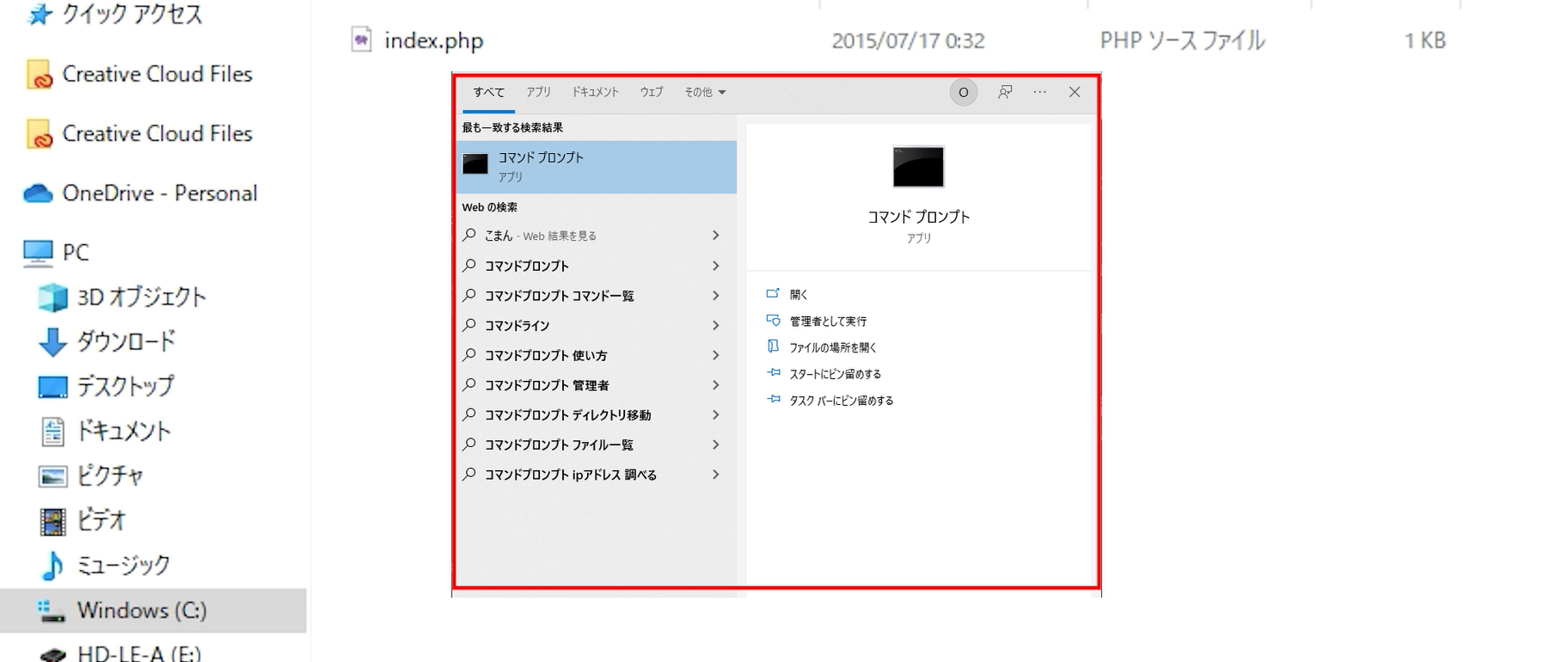 コマンドプロンプトはWindowsの検索で出てくるよ!