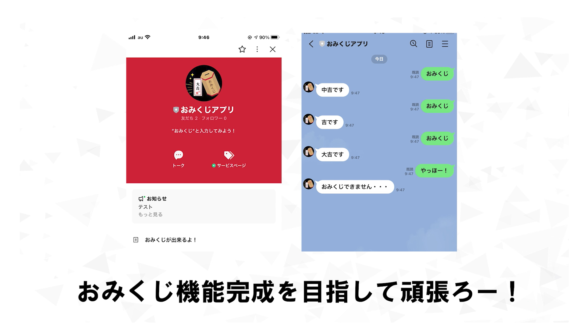 今回はさらにパワーアップしてボットを使った、おみくじアプリを作るんだよね。