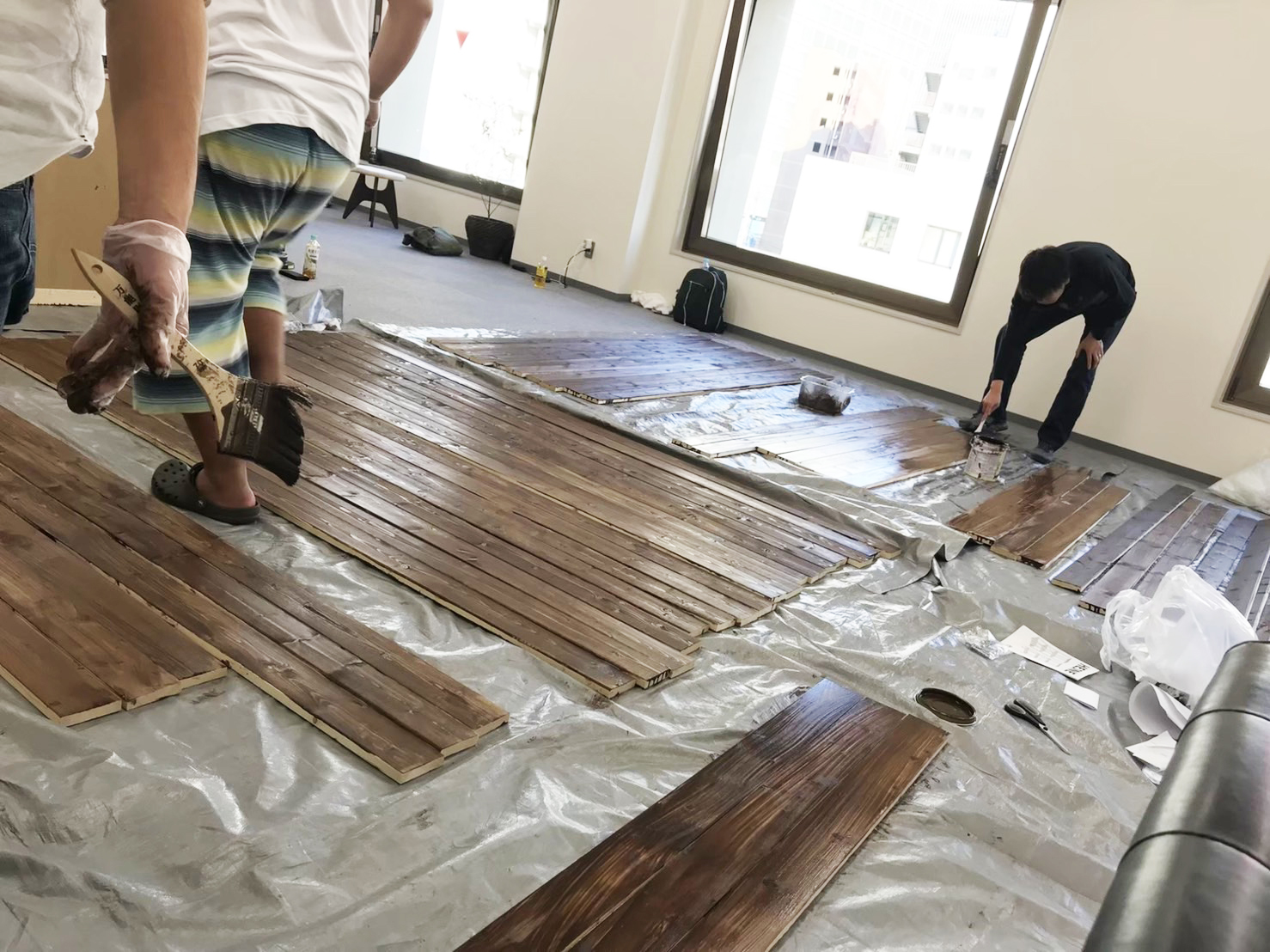 そもそもなぜ改造することになったのか。実は改造前のオフィスの壁は社員達で木材を調達し、木を切り、色を塗って建てたDIYで作っていました。