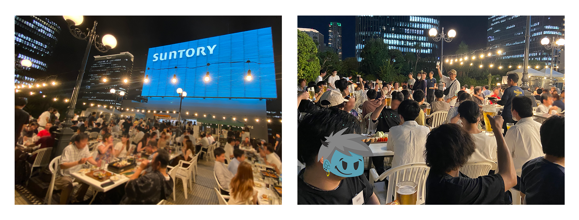 今回の会場はサントリービルの屋上にあるビアガーデンでした◎