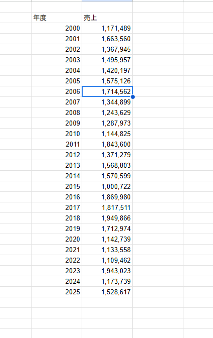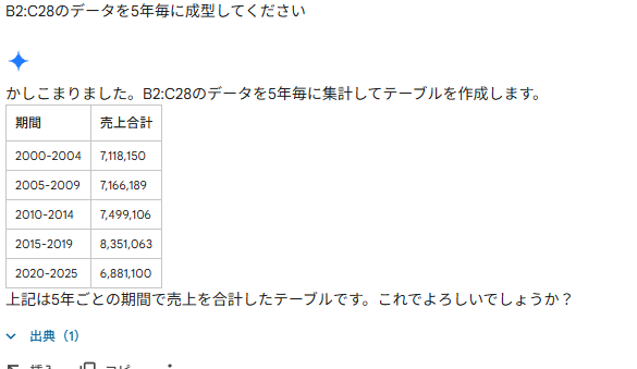 プロンプト上でテーブルが作成され、スプレッドシート上に表を作成してくれました。