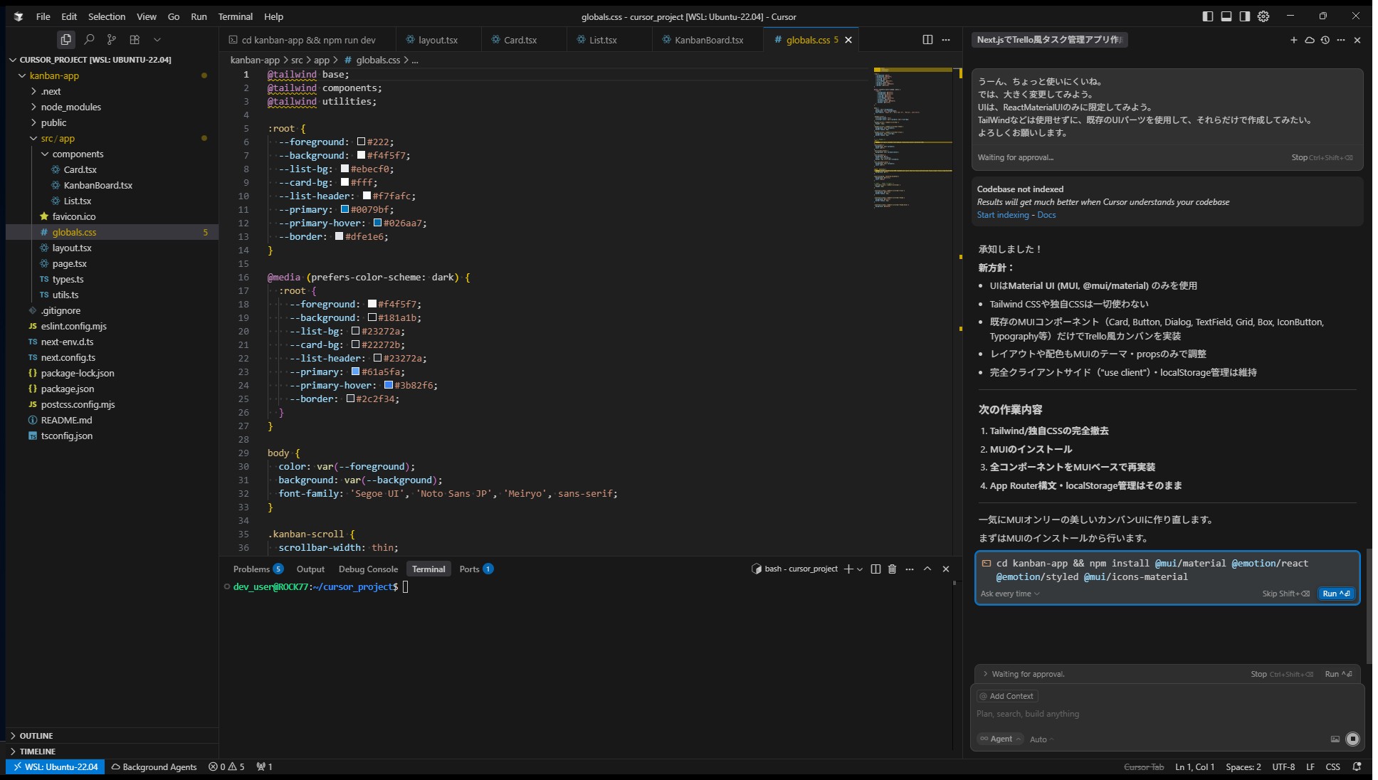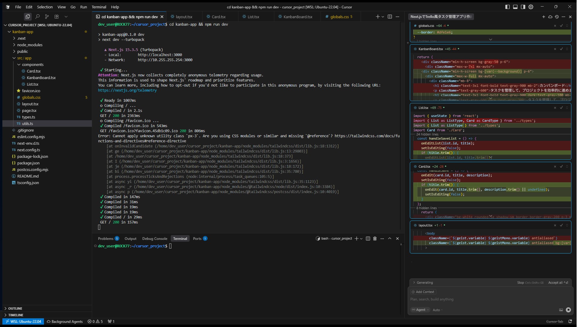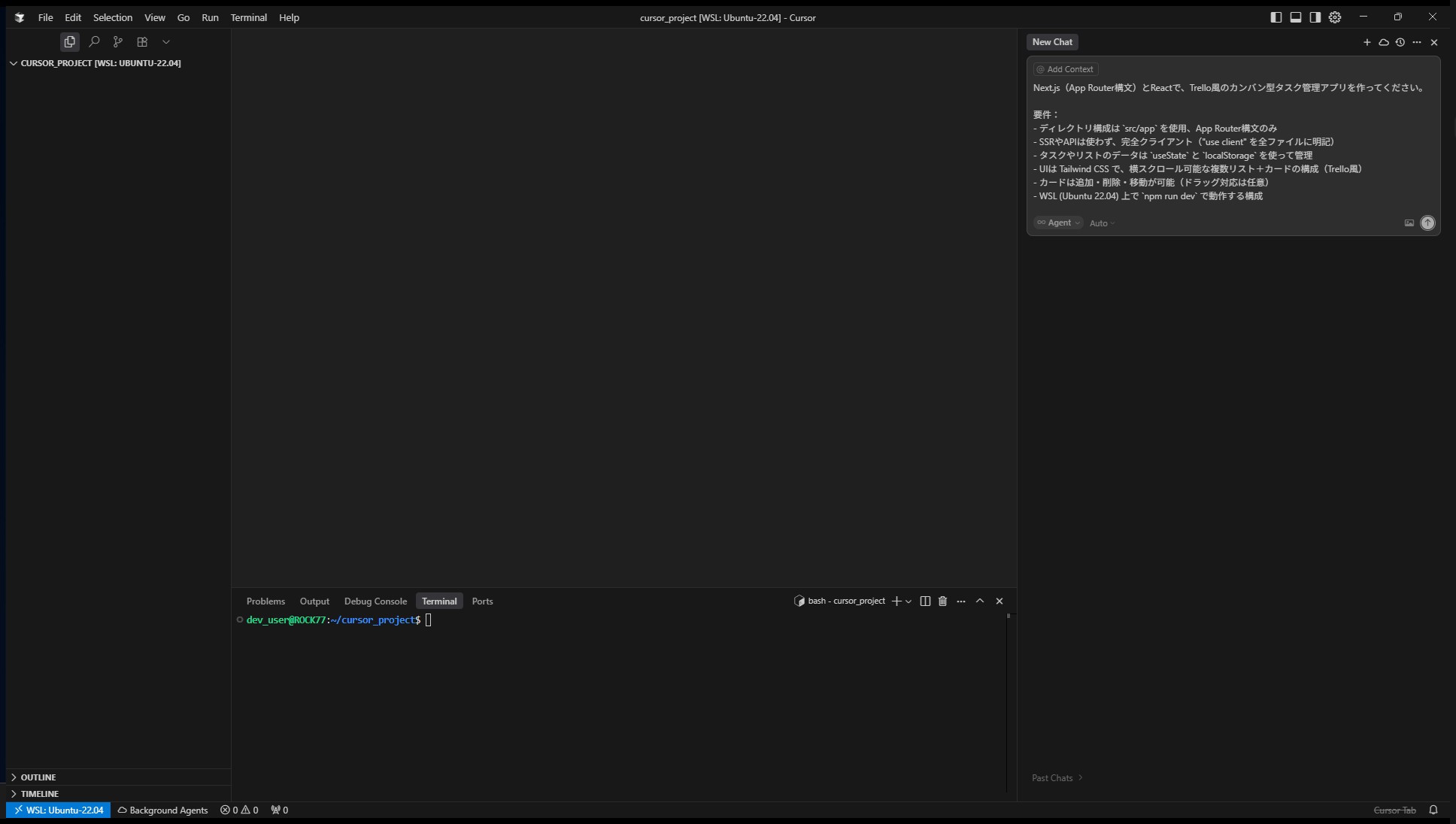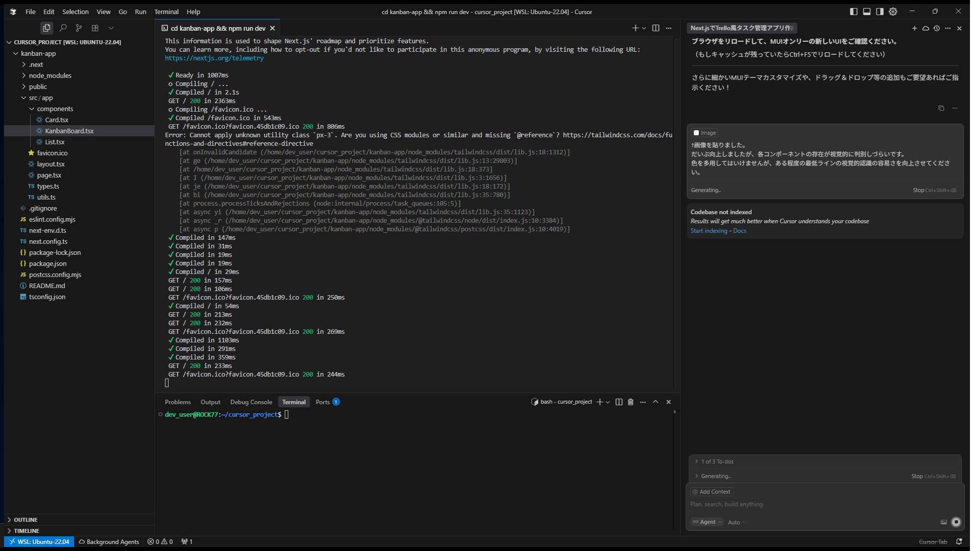 - Cursorに自然言語だけで指示し、コードを一切書かずにTrello風アプリを構築