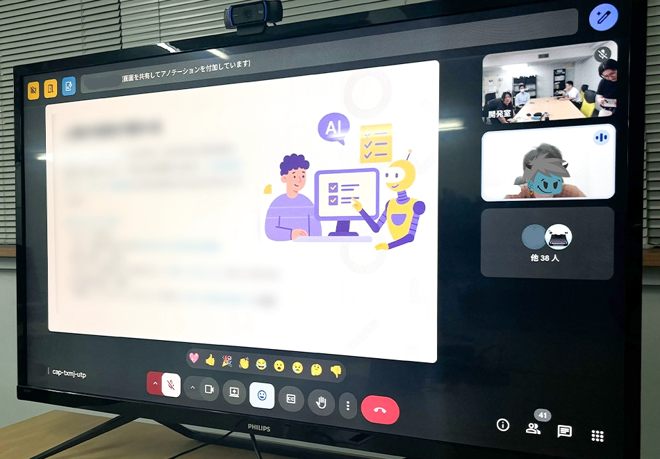 自宅からリモート、社内メンバーは現地で参加し約50名ほどが集まりました。