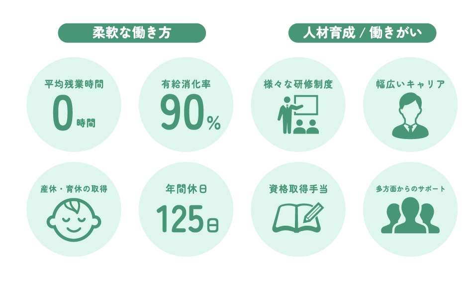 評価制度も整っているので、バリバリ働きたい人もマイペースに働きたい人も、どちらも自分に合ったスタイルを選べます。