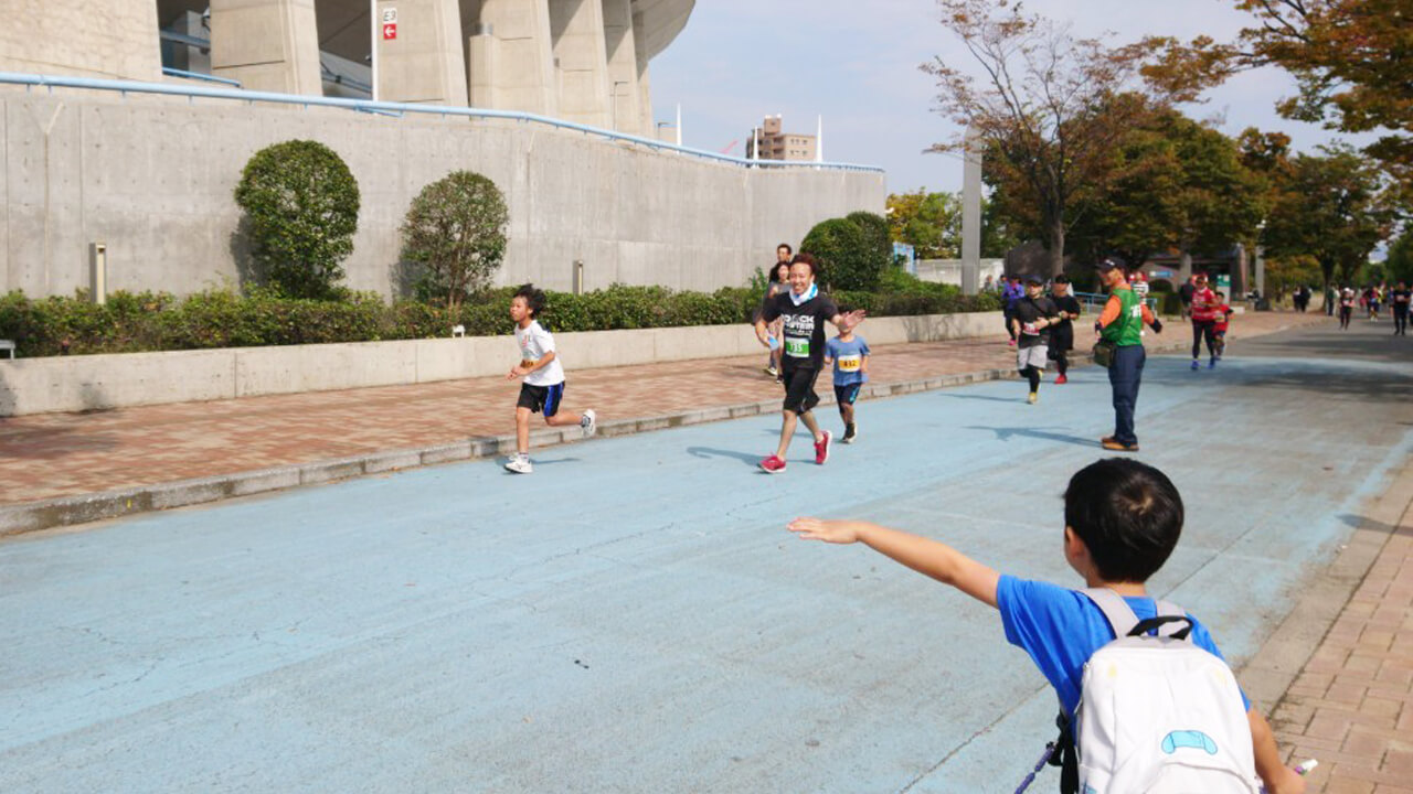 社員のお子さんの声援に答える普段運動不足の社員もすっかりランニングにはまり仕事終わりもよく走っているそうです!イベントにはミスユニバースに挑戦した美女達もゲスト参加していてテンションが上がりました!