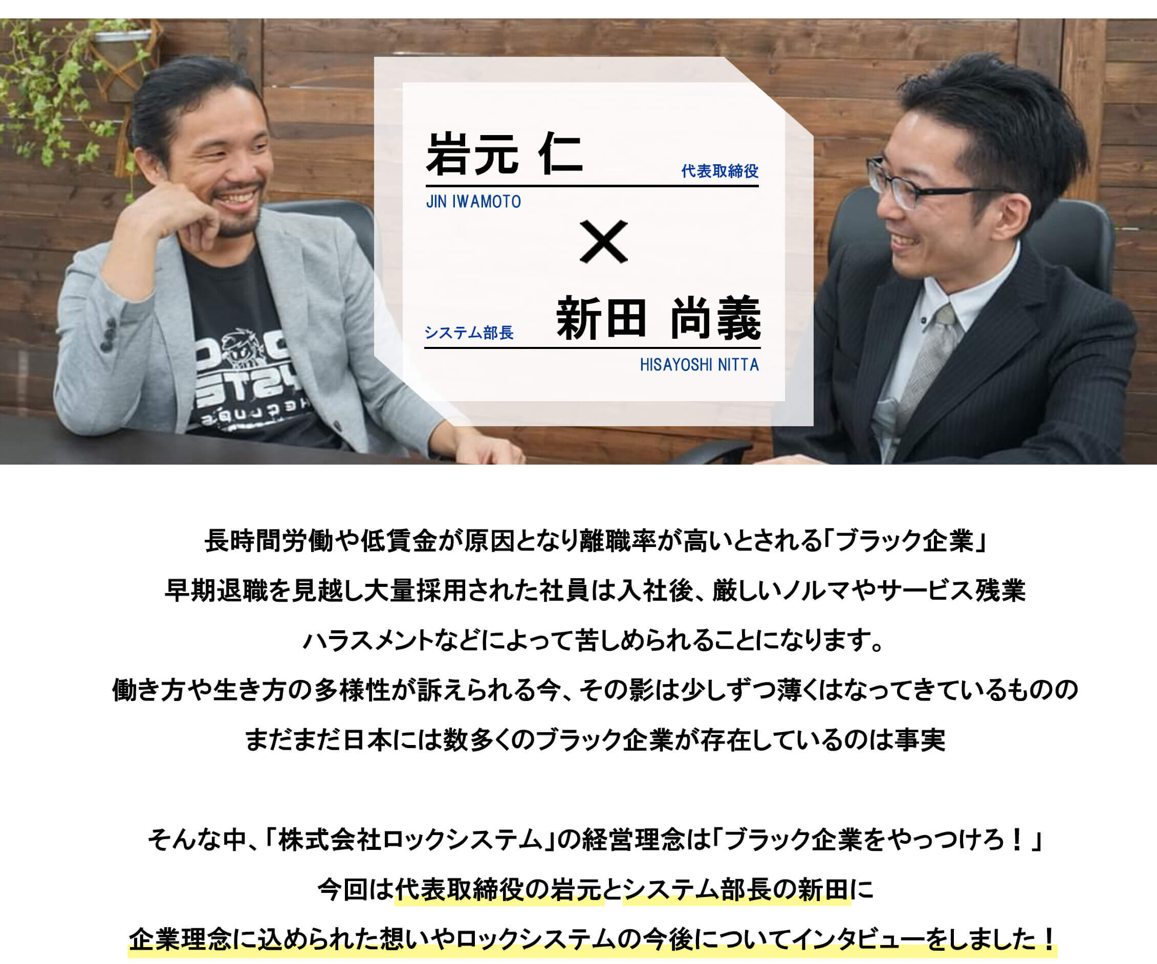 司会:気になっていたのですが、「ブラック企業をやっつけろ!」という企業理念にはどんな想いが込められているんでしょう?